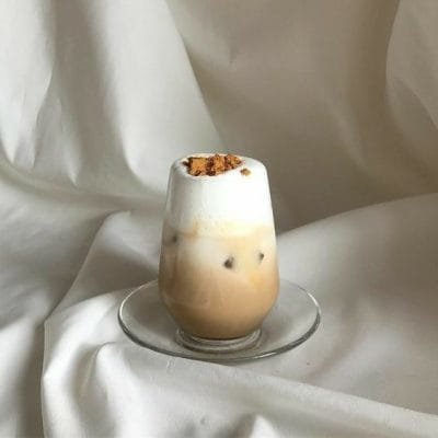 Bước 3: Phù lớp milk foam khoảng 4-5cm lên trên cùng của ly nước.