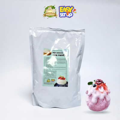 Bột làm Bingsu (hay còn gọi là bột sữa tuyết) là hỗn hợp dạng bột mịn chứa sữa, kem béo và các dưỡng chất giúp tạo cấu trúc đá bào tơi xốp. Thay vì dùng đá nước thông thường, việc sử dụng bột sữa tuyết chuyên dụng là giải pháp tối ưu cho kinh doanh.