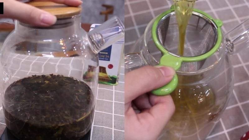 Đầu tiên, bạn cho trà vào bình pha với 1000ml nước nóng nhiệt độ từ 90 – 95 độ C rồi đậy nắp và ủ trà trong khoảng 15-20 phút. Trà sau khi ủ xong, bạn dùng rây lọc qua, bỏ xác trà và chắt lấy nước cốt.