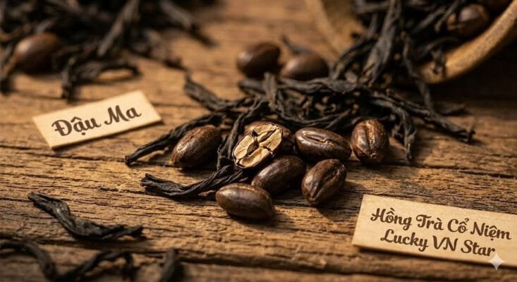 Đây là điểm khác biệt lớn nhất giúp bạn nhận diện Hồng Trà Cổ Niệm Lucky VN Star so với các loại hồng trà công nghiệp: Sự hiện diện của hạt Thảo Quyết Minh (Đậu ma).