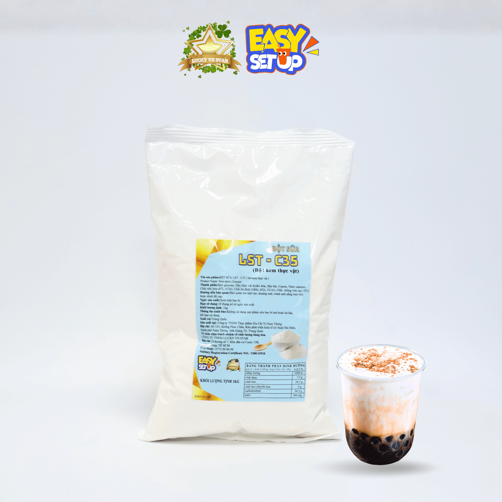 Bột pha trà sữa LST – C35 LUCKY VN STAR là bột sữa bán chạy nhất trên thị trường. Đối tượng chủ yếu là các quán trà sữa và café đá xay có đầu tư. Nếu bạn uống 1 ly trà sữa có độ sánh đậm thì 90% được pha bằng bột sữa LST – C35 LUCKY VN STAR