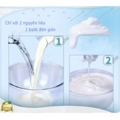 chỉ cần 50gr bột và 100ml nước hoặc sữa lạnh đánh bông trong 5 phút là có thể thưởng thức ngay.